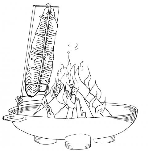 und bereiten den herrlichen Feuerlachs, auch Flammlachs genannt, am offenen Feuer zu.