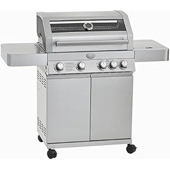 * Material: Abdeckhaube, Bedienfeld und Brenner aus Edelstahl, Unterbau und Seitenablagen aus lackiertem Stahl